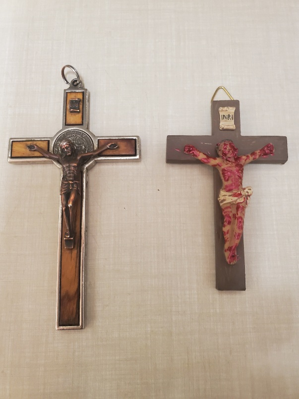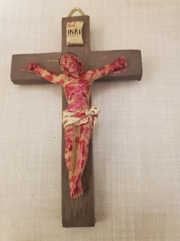 Also on the internet I tried to find and buy a five inch high Cross with a bloody Jesus–none to be found.